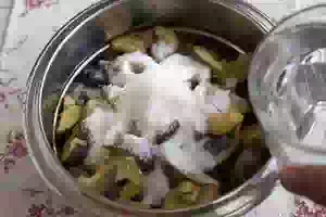 3. Наливаем воду. Она нужна, чтобы слива быстрее пустила сок.