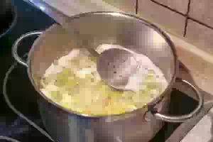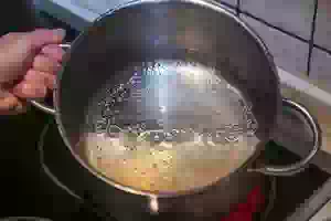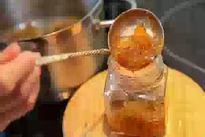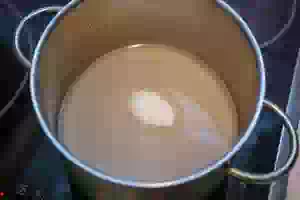 4. Продолжить варить на слабом огне 10-15 минут после закипания, снимая шумовкой пену. Снять кастрюлю с плиты, оставить на ночь, не накрывая крышкой.
