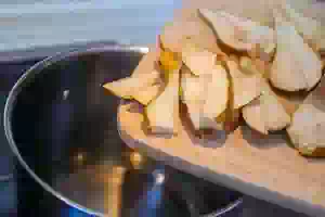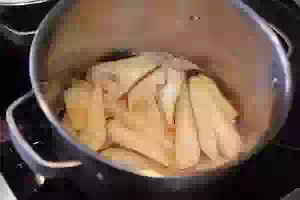6. Переложить нарезанные груши в кипящую подкисленную воду.