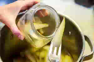 6. Переложить нарезанные груши в кипящую подкисленную воду.