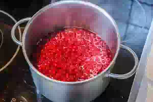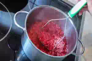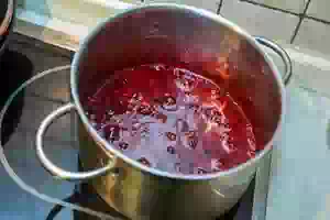 2. Сложить ягоду в кастрюлю или в таз для варенья. Если у вас нет специального посуды для варки. Поставить емкость с ягодами на самый маленький огонь, накрыть крышкой (можно взять крышку меньшего диаметра, чем кастрюля, чтобы она прижимала ягоды) и ждать, когда ягоды начнут лопаться и отдавать сок. Как только увидите, что в кастрюле стало много жидкости, и она начинает закипать, снять с огня.