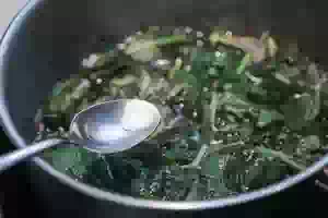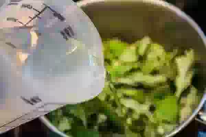 2. Сложить зелень в небольшую кастрюлю и залить питьевой водой.