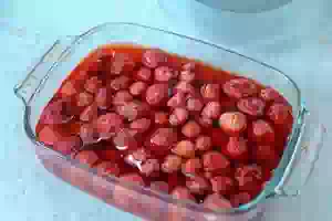 3. Оставить при комнатной температуре на ночь (максимум на сутки). Клубника даст сок, поэтому жидкости в форме стало еще больше.