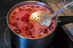 6. Поставить на слабый огонь и довести до кипения. Варить, снимая пену и помешивая.