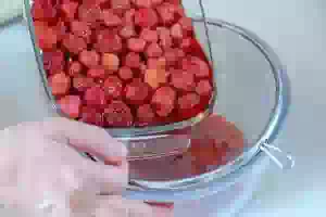 1. Клубнику перебрать, промыть и откинуть на дуршлаг, чтобы максимально удалить лишнюю влагу.