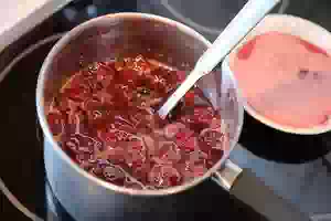 6. Поставить на слабый огонь и довести до кипения. Варить, снимая пену и помешивая.