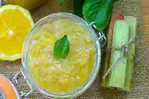 7. Варенье из ревеня с апельсином полностью готово, осталось разложить по стерильным баночкам и закатать, либо же просто поместить его в чистую сухую стеклянную тару и хранить в холодильнике не более двух недель.
