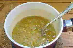 5. Влить холодную воду. Поставить на плиту. После закипания нагрев сделать ниже среднего, чтобы варенье из ревеня медленно булькало. Периодически помешивая, готовить 30 минут. Если увидите, что жидкости мало и содержимое кастрюли начинает пригорать, добавьте еще воды. В готовом варенье кусочков ревеня не должно быть видно, они практически полностью распадаются на волокна.
