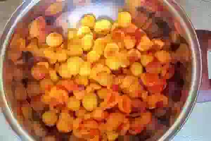3. Складывать половинки в подготовленную посуду для варки варенья.