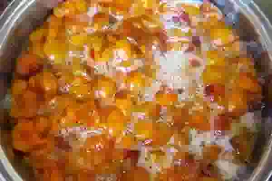 6. Поставить на средний огонь и дождаться, чтобы варенье начало кипеть.