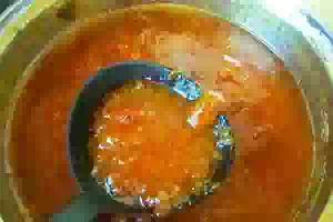 8. Проварить абрикосовое варенье еще 2 раза. После третьего кипячения получившееся варенье в горячим разлить по банкам. Дать им полностью остыть, прикрыв тонкой тканью или марлей. Затем накапать в каждую банку сверху по 5-7 капель 70% уксуса и закрыть крышка. Это предотвратит образование плесени. Необыкновенно вкусное абрикосовое варенье готово.
