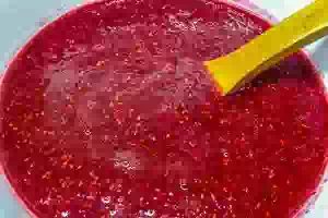 5. Перемешиваем сахарный песок с малиной. Продолжаем размешивать деревянной или силиконовой лопаткой или ложкой до полного растворения сахара в малиновом соке. Когда сахар в малине растворится, раскладываем получившуюся массу по небольшим контейнерам с крышкой. Чтобы влага не испарялась, плотно закрываем крышки и убираем в морозильную камеру.