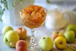 Снова поставить кастрюлю с вареньем на слабый огонь и варить, постоянно помешивая, 10-15 минут. За 5 минут до окончания варки добавить пектин, смешанный с отложенным сахаром. Это способствует загустению варенья, если фрукты дадут слишком много сока. Готовое варенье из персиков с яблоками сразу разлить по подготовленным стерилизованным банкам, плотно закрыть крышками, банки перевернуть вверх дном и оставить в таком виде, пока варенье полностью не остынет. Хранить варенье в прохладном месте.