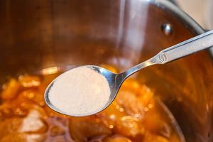5. Снова поставить кастрюлю с вареньем на слабый огонь и варить, постоянно помешивая, 10-15 минут. За 5 минут до окончания варки добавить пектин, смешанный с отложенным сахаром. Это способствует загустению варенья, если фрукты дадут слишком много сока. Готовое варенье из персиков с яблоками сразу разлить по подготовленным стерилизованным банкам, плотно закрыть крышками, банки перевернуть вверх дном и оставить в таком виде, пока варенье полностью не остынет. Хранить варенье в прохладном месте.
