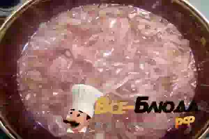 2. В глубокой подходящей посуде распускаем сливочное масло. Закладываем лук. Тушим его помешивая до прозрачности. Не в коем случае не даем луку жарится!