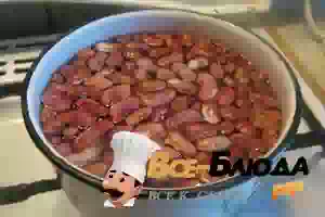 1. В отдельной кастрюльке замочить фасоль на 1,5-2 часа. Можно это сделать с вечера, например. С утра сварить фасоль до полной готовности (1-1,5 часа).