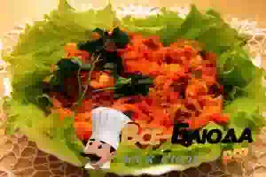Капуста "Весенняя" с куркумой Ингредиенты: Капуста белокочанная - 400 гр. Куркума - 3-4 чайн. ложки Морковь крупная - 1 шт. Перец черный молотый Растительное масло Чеснок - 2 зубчика Томаты - 3 шт. Лук - 1 шт. Зелень Соль