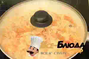 4. Поставить тушиться с овощами на медленный огонь под крышкой на 30-40 минут до желаемой мягкости капусты, добавив примерно 200 мл воды. Воду немного посолить.