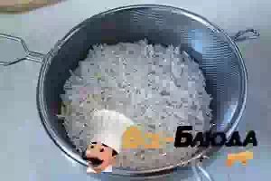 1. Для приготовления овощного плова сначала надо подготовить рис. Его надо хорошо промыть под проточной водой, сложить в миску и замочить в холодной подсоленной воде на 30 минут. После замачивания рис откинуть на дуршлаг.