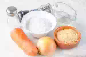 1. Подготавливаем продукты для приготовления котлет из риса и моркови.