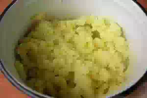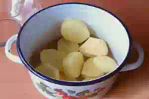 5. Картофель варим до мягкости (20-25 минут после закипания) и разминаем до однородности, предварительно слив всю воду. Оставляем картофельное пюре остывать до теплого состояния.