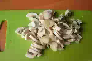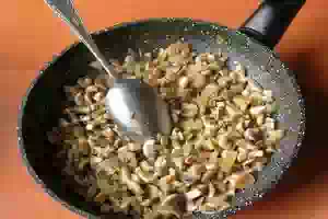 6. Обжариваем грибы и лук на растительном масле до готовности (до прозрачности лука и пока не выпарится влага из грибов), солим по вкусу.