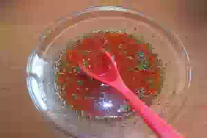 7. Пока грибы с луком и картофель остывают, готовим заливку: в отдельной ёмкости смешиваем томатную пасту, соль и сахар (количество соли и сахара можно регулировать на свой вкус), прованские травы; заливаем кипячёной водой.