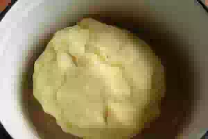 8. Замешиваем картофельное тесто: в тёплый картофель добавляем растительное масло и муку. Муку добавляем не всю сразу, её может понадобиться меньше, в зависимости от сорта картофеля. Хорошо вымешиваем. Картофельное тесто не должно рассыпаться.
