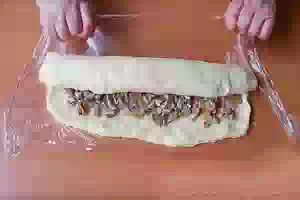 10. С помощью пищевой плёнки заворачиваем рулет.