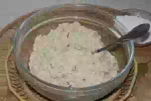 4. Все компоненты очень хорошо перемешаем ложкой. Тесто должно лепиться. Если оно немного жидковато, то следует добавить пару ложек муки.