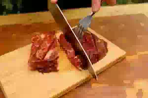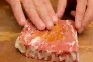 2. Повторяем эту же процедуру с обратной стороны стейка и оставляем его ненадолго, чтобы он просолился.