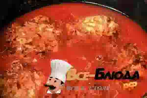 6. Когда котлеты поджарятся с одной стороны, а это займет минут 5-7, перевернем их и, выдержав 3 минуты, зальем томатным соком. Оставим тушиться под крышкой до готовности. Если томатного сока под рукой не оказалось, можно развести водой томатную пасту и немного посолить. Готовые луковые котлеты подавать к столу горячими.