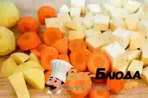 2. Картошку и репу нарезать кубиками, морковь - кружочками.