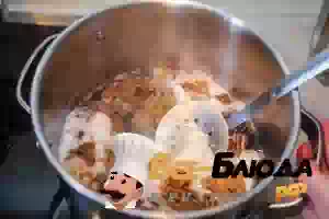 2. Строчки промыть под проточной холодной водой, т.к. в них может оказаться мусор (например, песок). Промытые грибы залить холодной водой и оставить вымачиваться на несколько часов или на ночь. После замачивания слить с грибов воду, переложить их в кастрюлю и залить небольшим количеством воды, так, чтобы жидкость только покрывала строчки. Довести воду до кипения и варить грибы на среднем огне, снимая пену, около 20 минут. Откинуть вареные грибы на дуршлаг и дать воде стечь.