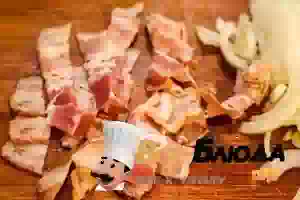 4. Бекон порезать маленькими кубиками. У меня был бекон в пластинах, но можно и обычный, брусочком.