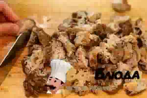 5. Когда с вареных грибов стечет вода, порезать сморчки пластинами или как вам захочется. Можно вообще грибы не нарезать, если они мелкие.