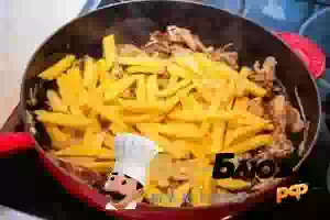 7. Примешать к грибам с луком нарезанный брусочками картофель. Жарить до образования корочки на картофеле. Затем прикрыть сковороду крышкой, и жарить, помешивая, до готовности картофеля. Посолить и поперчить по вкусу. Подавать жареные строчки с картофелем, пока они горячие. По желанию посыпать мелко нашинкованной зеленью.