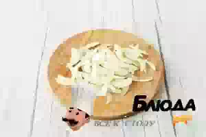 3. Репчатый лук очистите, помойте. Нарежьте лук тонкими полукольцами или перьями.