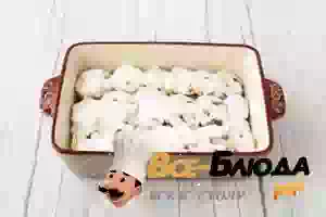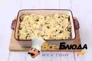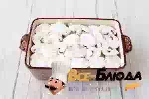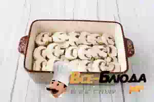 8. Затем равномерным слоем выложите половину нарезанных гриов.