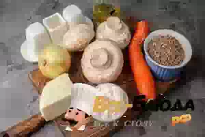 1. Подготовьте все необходимые ингредиенты. Грибы, желательно, выбрать крупные, но если не нашли, то берите какие есть, но увеличьте их количество.
