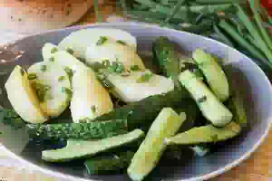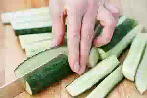 1. Чтобы приготовить быстрые малосольные огурцы, предварительно надо их промыть, а затем сложить в ёмкость подходящего размера и залить на несколько часов холодной воды. Каждый огурец разрезать вдоль на 4-6 частей в зависимости от их размера и сложить в контейнер с крышкой. Если такого нет, то - в обычную кастрюлю.