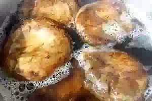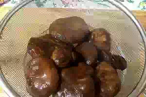 3. Наливаем в небольшую эмалированную посуду пол-литра воды. Бросаем 5г соли и опускаем коровники. Варим 1 час, снимая пенку.