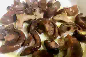 5. Большие шляпки грибов разрезаем пополам.