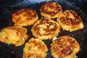 3. Мокрыми руками сформировать небольшие котлеты и жарить на разогретом масле пару минут на одной стороне.