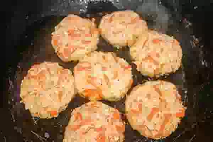 4. Затем перевернуть и жарить овощные котлеты с овсянкой до готовности. Котлеты подавать горячими.