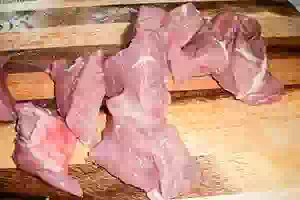 2. Кусочки телячьего филе. Тоже режем на удобоупотребимые кусочки.