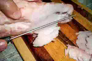 4. Жирок курдючный … практически строгаем. Тонкими ломтиками … максимум по 3 миллиметра.