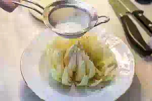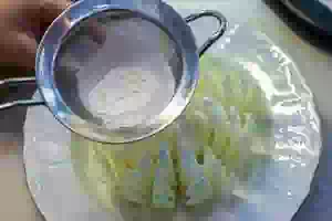 6. Уложить луковицу на тарелку, посыпать её солью и мукой.