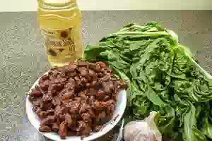 1. Пропорции произвольные, но примерно такие, чтобы в готовом блюде фасоли и эскарола было поровну. Фасоль может быть и белая, и черная, какая угодно. У меня сегодня красная. Надо иметь в виду, что эскарол при готовке уменьшается в объеме, а фасоль увеличивается. Чеснок по вкусу, но в итальянских блюдах он должен чувствоваться довольно сильно, не чуть-чуть. Итак, фасоль у меня была замочена и уже сварена в подсолённой воде до мягкости.
