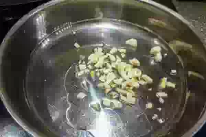 2. Рубим чеснок и слегка обжариваем в масле, до аппетитного аромата.